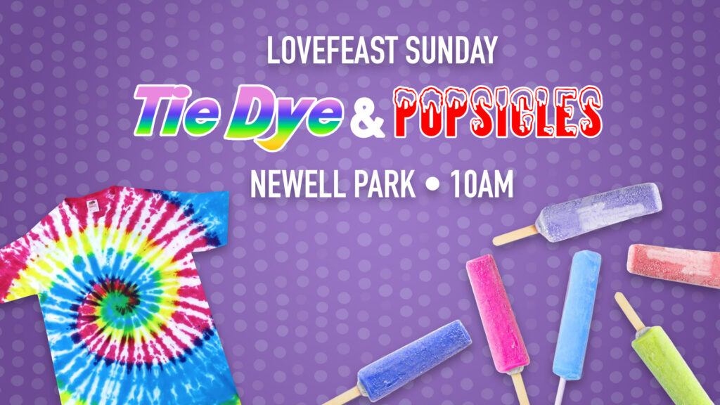 In our monthly rhythm of worship, this Sunday is Lovefeast Sunday, a gathering for sharing food, fun, and fellowship. Pastor Osheta will be leading a service focused on joy and summer activities. There will be times for signing some of our favorite Summer camp songs and there will be Tie Dye and Popsicles!
