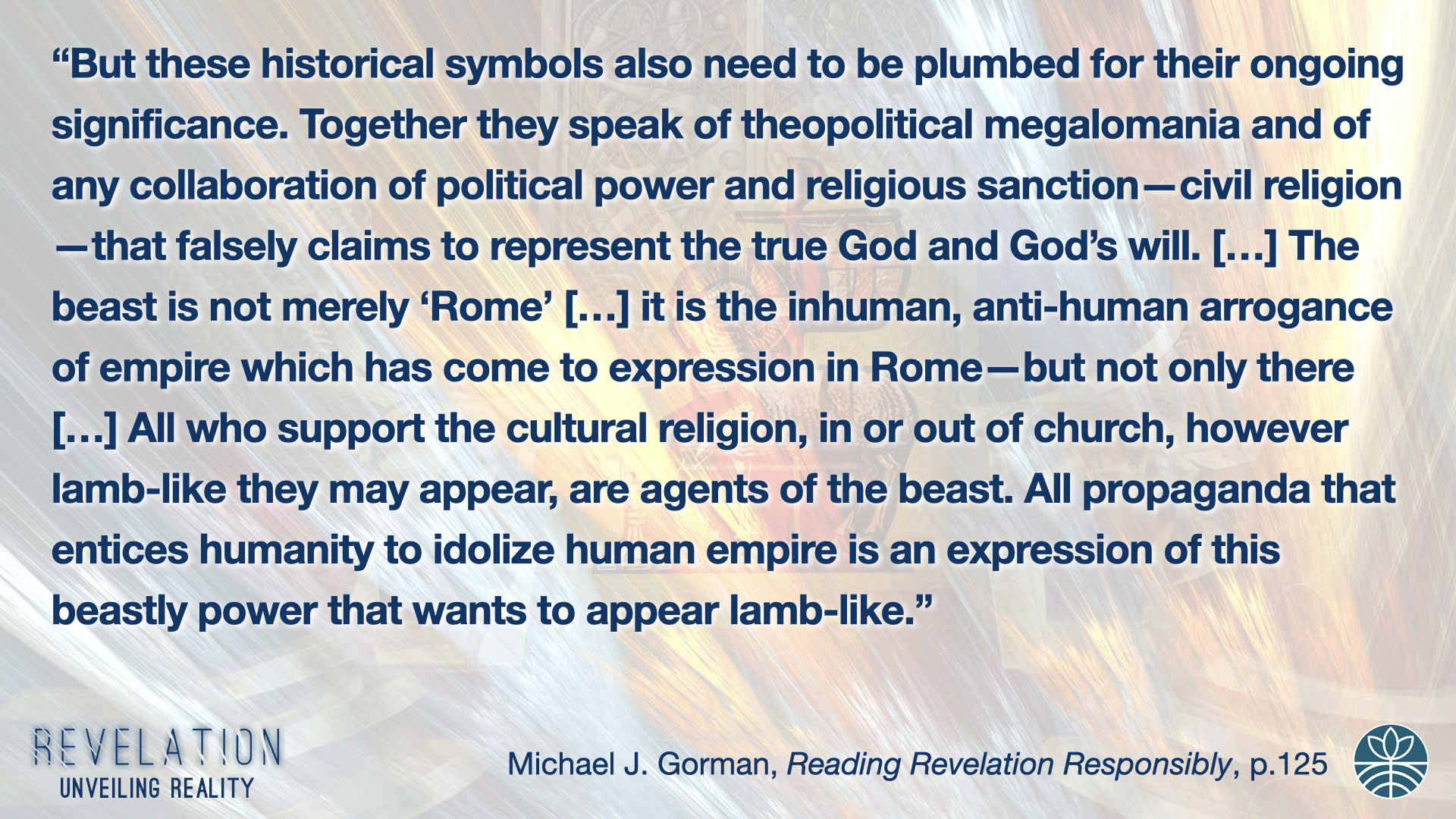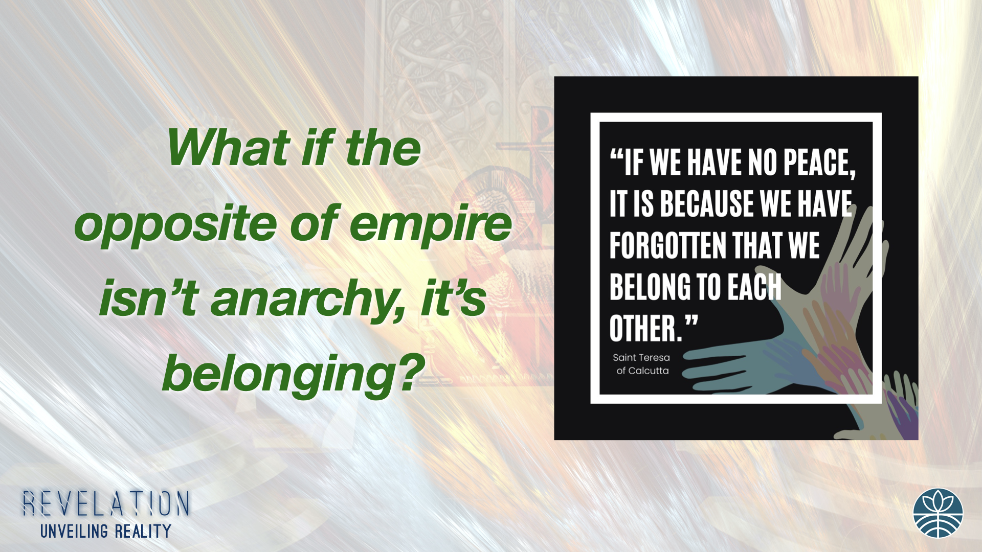 In this sermon, we explore how John’s visions of beasts, dragons, and Babylon aren’t predictions of the world’s end, but prophetic unveilings of empire’s true nature—then and now. Revelation exposes the seductive power of political and religious systems that disguise domination as righteousness and violence as peace. Drawing insight from voices like Michael J. Gorman, Walter Wink, and Willie James Jennings, we see how empire still whispers through nationalism, greed, and false religion. Yet at the center of John’s vision stands the Lamb—Jesus—whose love unmasks the powers and reveals a better way. We’re invited to follow the Lamb by unmasking deception, resisting injustice, and reweaving communities of belonging that reflect God’s kingdom of peace.